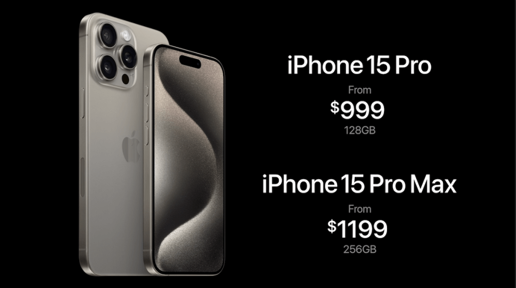 ▲iPhone 15 Pro及iPhone 15 Pro Max本周五開始接受預訂,9月22日賣街,售價分別由999美元起及1,199美元起,由于iPhone 15 Pro Max改由256GB起跳,實際未有如傳聞加價。