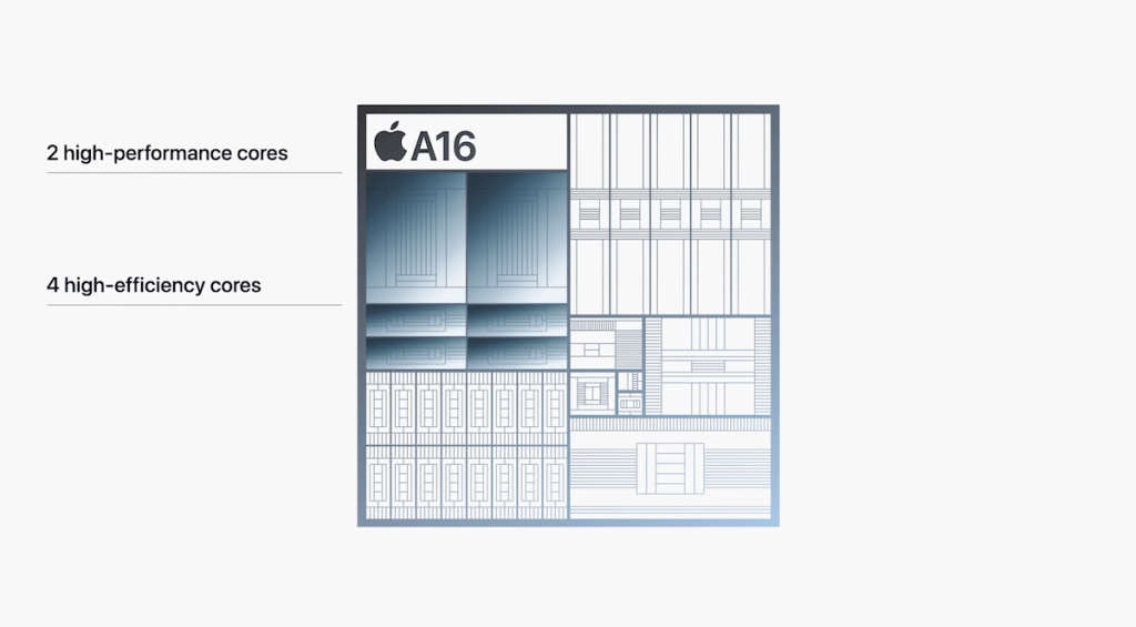 ▲iPhone 15及iPhone 15 Plus同步升級至A16 Bionic仿生芯片,擁有6核CPU及5核GPU。