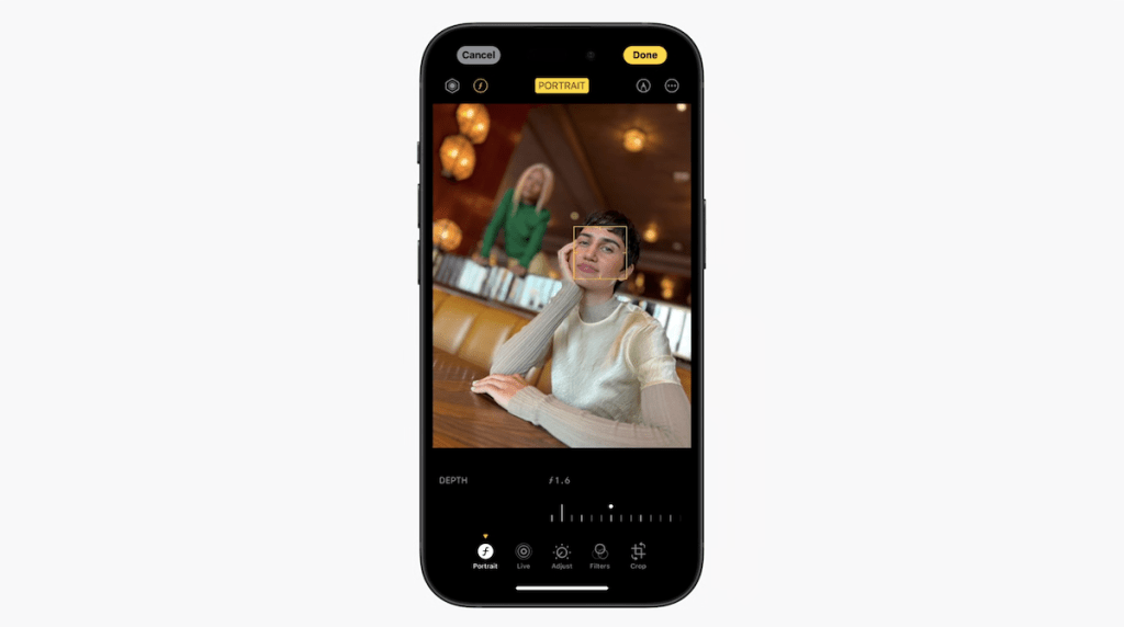▲iPhone 15及iPhone 15 Plus廣角主鏡可以自動偵測開啟人像拍攝,并可在拍攝后再調校焦距。