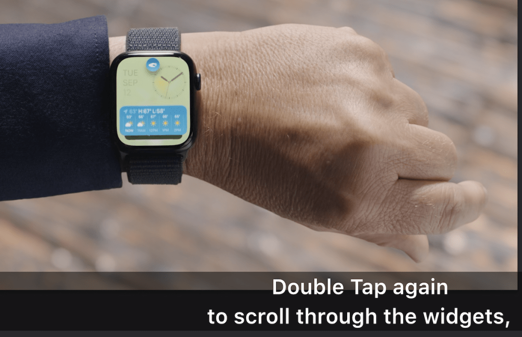 01:12 Apple Watch Series 9支援NameDrop交換卡名。熒幕亮度可以調低至1nit,最高可推至2,000nits,足足是上代2倍 ,烈日當空下仍可清晰顯示。 Apple Watch Series 9新增輕點兩下手勢功能,以拇指及食指指尖捏合2下,即可單手接聽電話及收線,亦可利用Double Tap操控不同App及功能,如關掉鬧鐘、停播音樂等等,甚至遙控iPhone拍攝。