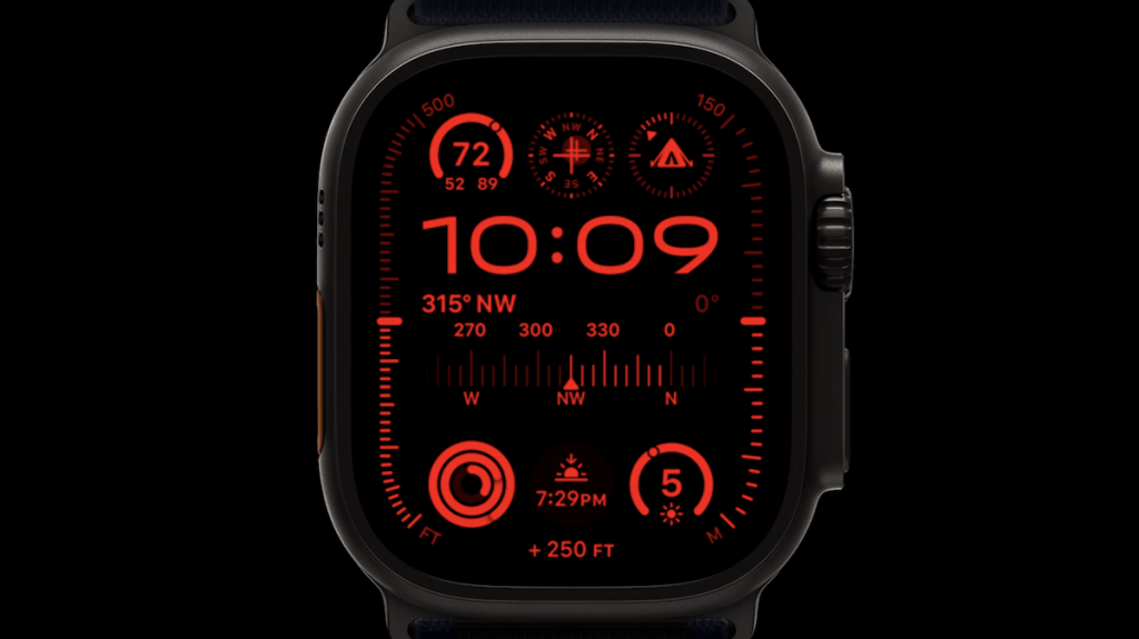 ▲Apple Watch Ultra 2登場,屏幕亮度高達3,000nits, 夜間模式更可以在昏暗環境中啟動。