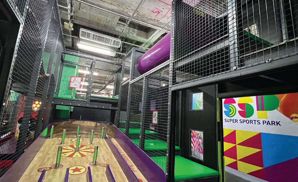 Super Sports Park除了是個好玩游樂場,更有多項有趣、健康及激發體能的運動設施,讓小朋友邊玩邊鍛煉,大人亦可在旁打氣,或落場齊齊玩!彈床樂園特設多個不同大小及難度的彈床,亦有分為小朋友及專業人士區域,小朋友可安心放電玩耍,專業人士也可于專業級彈床練習同時創造新招式,也有滿布軟綿綿海綿磚的海綿池,讓年齡較小一點的小朋友玩;喜歡刺激感的小朋友,就必玩空中滑索,感受空中滑行的快感,也可玩車軚滑梯,坐在大車軚上由滑梯最高點高速滑行,體驗跟普通滑梯截然不同的速度及離心力。