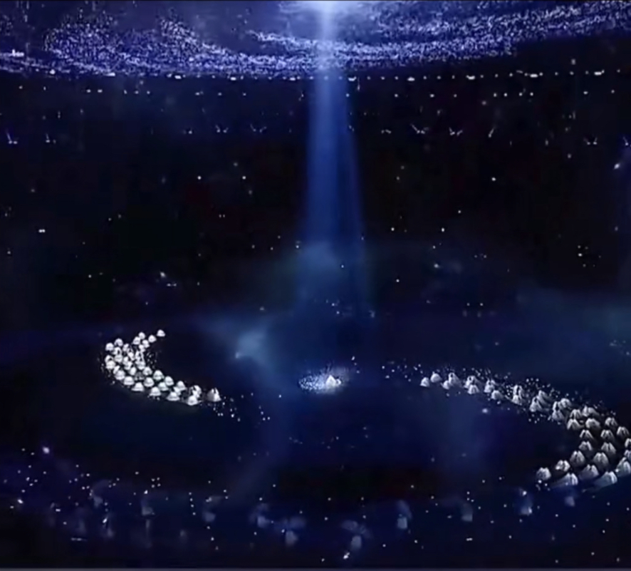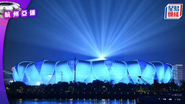 ▲9月18日,杭州亞運會開幕式演練在浙江杭州奧體中心舉行,璀璨燈光秀點亮夜空,美輪美奐。中新社