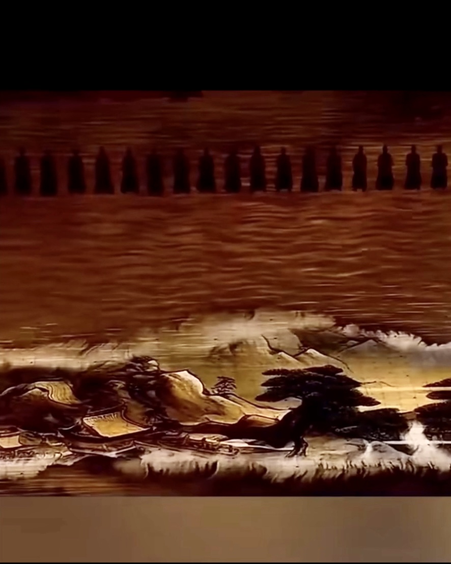 ▲現場通過地上屏幕和立體透視網幕的配合,將錢塘江和青山綠水搬到舞臺。
