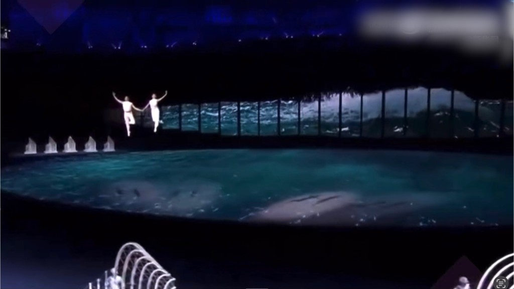 開幕式表演期間,2位舞者會吊“3D威也”在空中起舞,即2人各綁4根鋼索,最快飛行速度接近每秒4米。威也總設計謝永偉介紹,雙人比單人表演難度增加了很多倍,空間限制非常大。