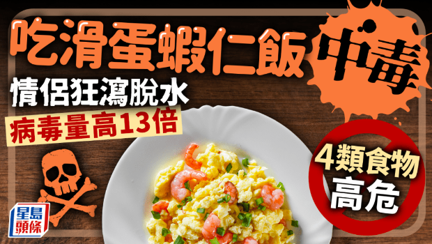 外出用餐,小心食物衛生。一對情侶日前到餐廳用餐,吃了滑蛋蝦仁飯。 隔日雙雙食物中毒,連日來上吐下瀉,甚至出現脫水等嚴重癥狀,經檢驗后證實感染沙門氏菌,嚴重可致命。 據本港衛生署資料,有4類食物同樣高風險,均為港人常吃的食物。