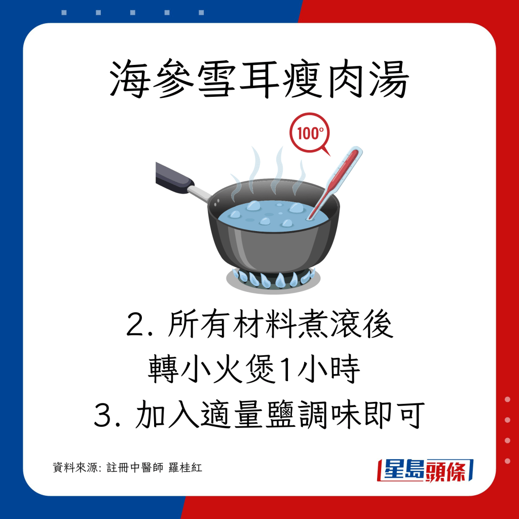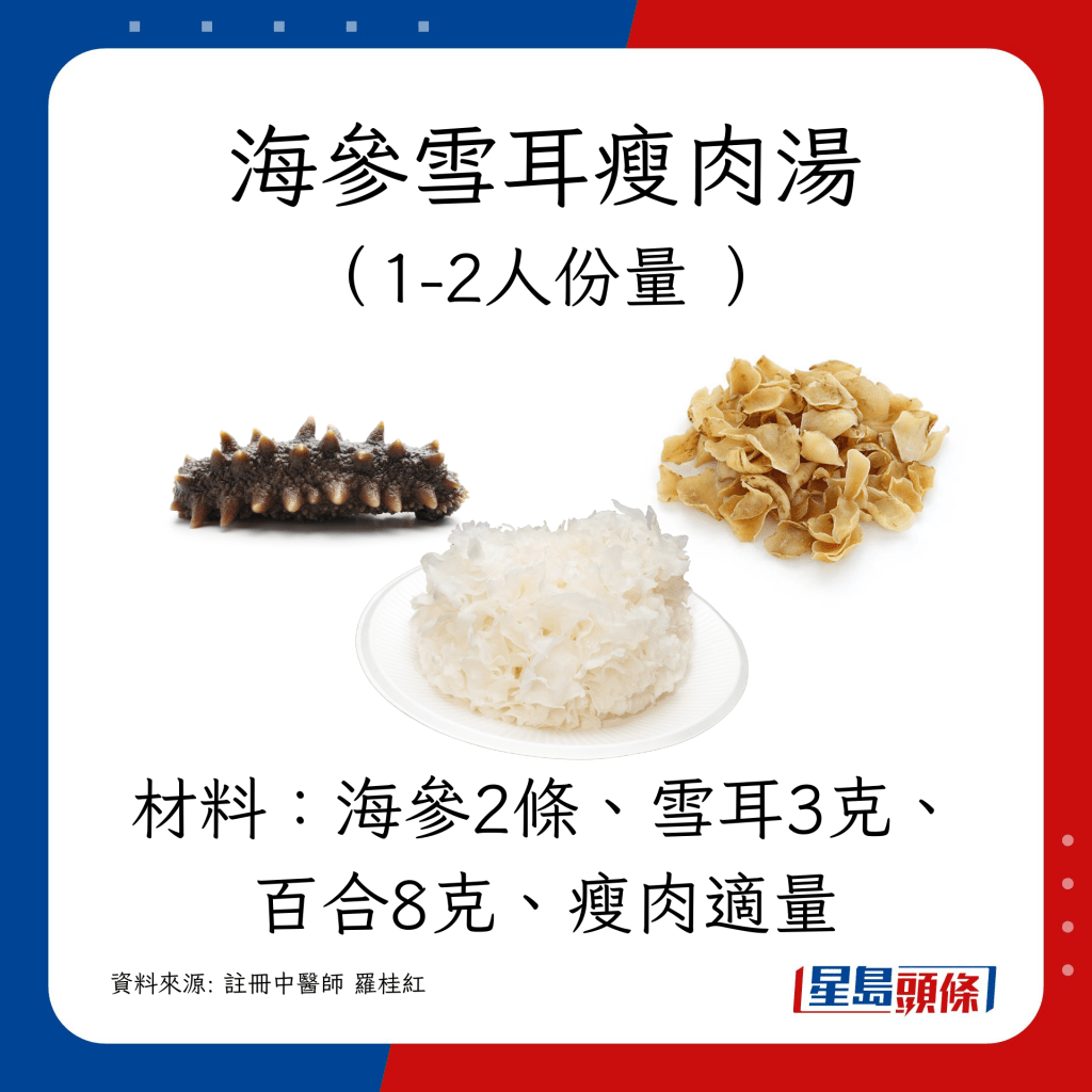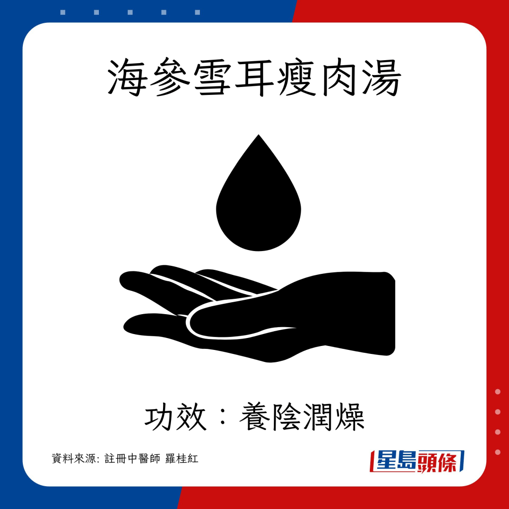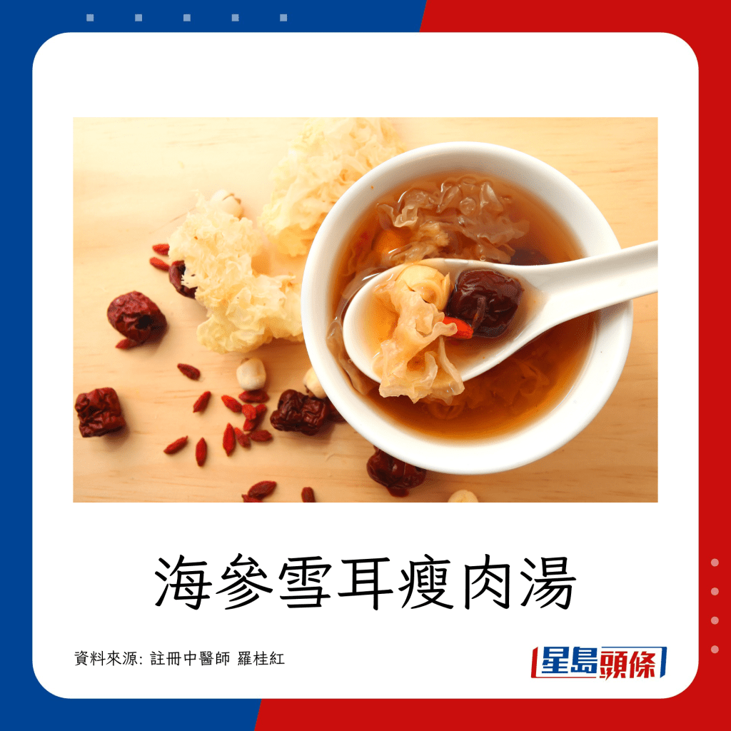 杏仁淮山瘦肉湯、海參銀耳瘦肉湯,功效、材料、做法如下: