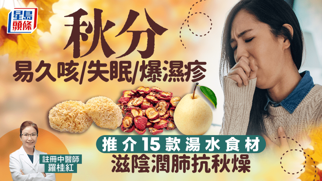 今天(9月23日)是秋分,是秋天的中間點。注冊中醫師羅桂紅接受《星島頭條》訪問指,秋分天氣變得干燥,氣溫會逐漸降低,可能會引發咳嗽、失眠或濕疹等病。 羅醫師講解秋分氣候特征及養生宜忌,并推介4款湯水及11款食材,有助滋陰潤燥,在秋分時節好好養生。