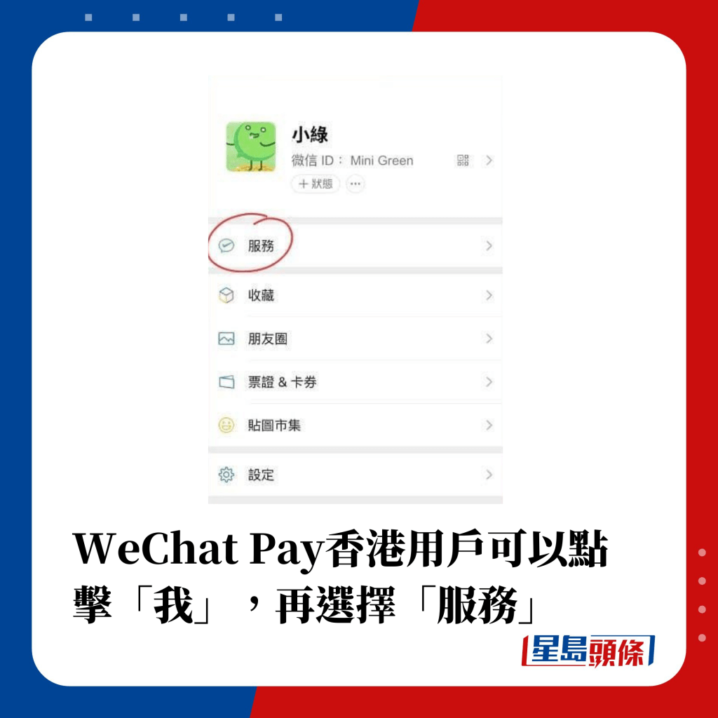 ▲WeChat Pay香港用戶可以點擊“我”,再選擇“服務”