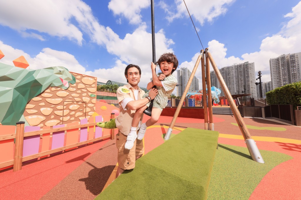 恐龍對小朋友有著懾人魔力,將游戲設施融入恐龍造型,更讓小朋友難以抗拒!焦點為鎮守公園入口,總長26米、高7米的巨型恐龍造型游樂設備 — “暴龍大冒險”,集繩網、攀爬及滑梯于一身,孩子可挑戰4.5米高的網橋,還有3條不同長度及形狀的滑梯、繩網陣、吊床及平衡木等,每組設施均為針對兒童的體能、協調、平衡及觸感多方面發展而設計。
