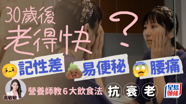 30歲過后老得特別快,容易腰背痛,記性差?營養師高敏敏指出,踏入30歲后,就會出現容易便秘或記憶力變差等6大初老癥狀。她教針對不同癥狀,補充所需的營養素及食物,延緩衰老。