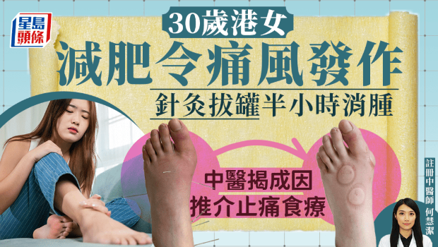 除了天氣轉變、飲食不當,減肥也可能引發痛風。注冊中醫師何慧潔向《星島頭條》分享病例指,香港一名30多歲女子因節食減肥引發痛風,求診中醫急救,接受針灸及拔罐半小時后大幅消腫。