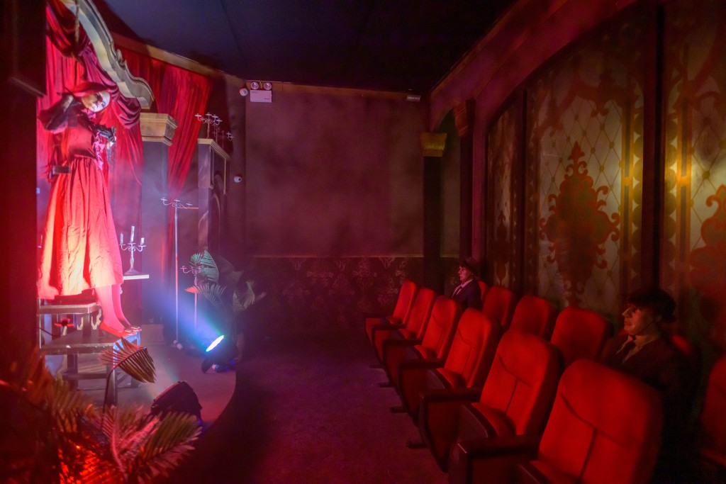 上年哈啰喂全園祭“咒偶I”鬼屋恐怖升級成“咒偶II”,走過衣帽間、放滿道具的倉庫及后臺,有不少詭異女演員正等人來探班。