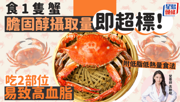 營養師高敏敏在其Facebook專頁講解秋蟹食用宜忌。 她表示螃蟹是低脂海鮮,且營養豐富,含有礦物質如鈣、磷、鋅、鐵、硒等,以及維他命A。 然而,螃蟹的膽固醇卻十分高,以1只約5兩重的青蟹為例,膽固醇含量已有370mg。 根據食安中心建議,成年人每天應進食少于300mg膳食膽固醇(遠低于飽和脂肪攝入量),代表吃1只青蟹已經令當日的膽固醇攝取量超標。