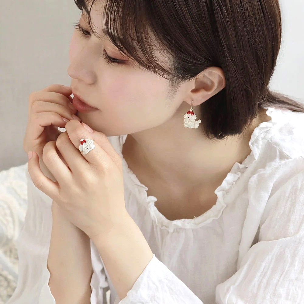 ▲Ayatorie馬爾濟斯犬 x Meringue蛋白餅拼檸檬茶耳環/HK$399/、指環/HK$339/iroiro。