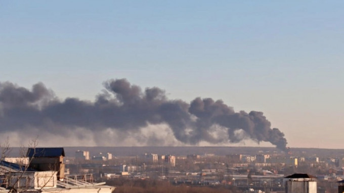 ▲俄庫爾斯克地區去年12月遭烏無人機襲擊后升起濃煙。美聯社