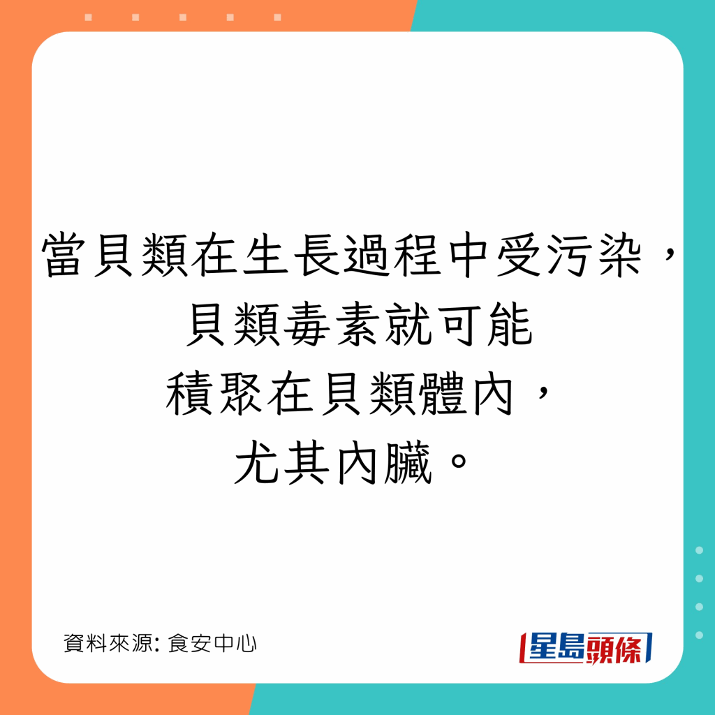 吃生蠔、帶子、青口等貝類海產,連汁吃也出事? 即使煮熟,毒素也無法消除? 根據香港食安中心資料,進食貝類海產應避吃3個部位,因為當中含毒素,可能會有食物中毒風險,甚至會致命。