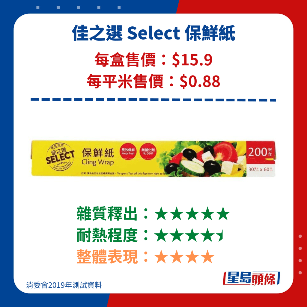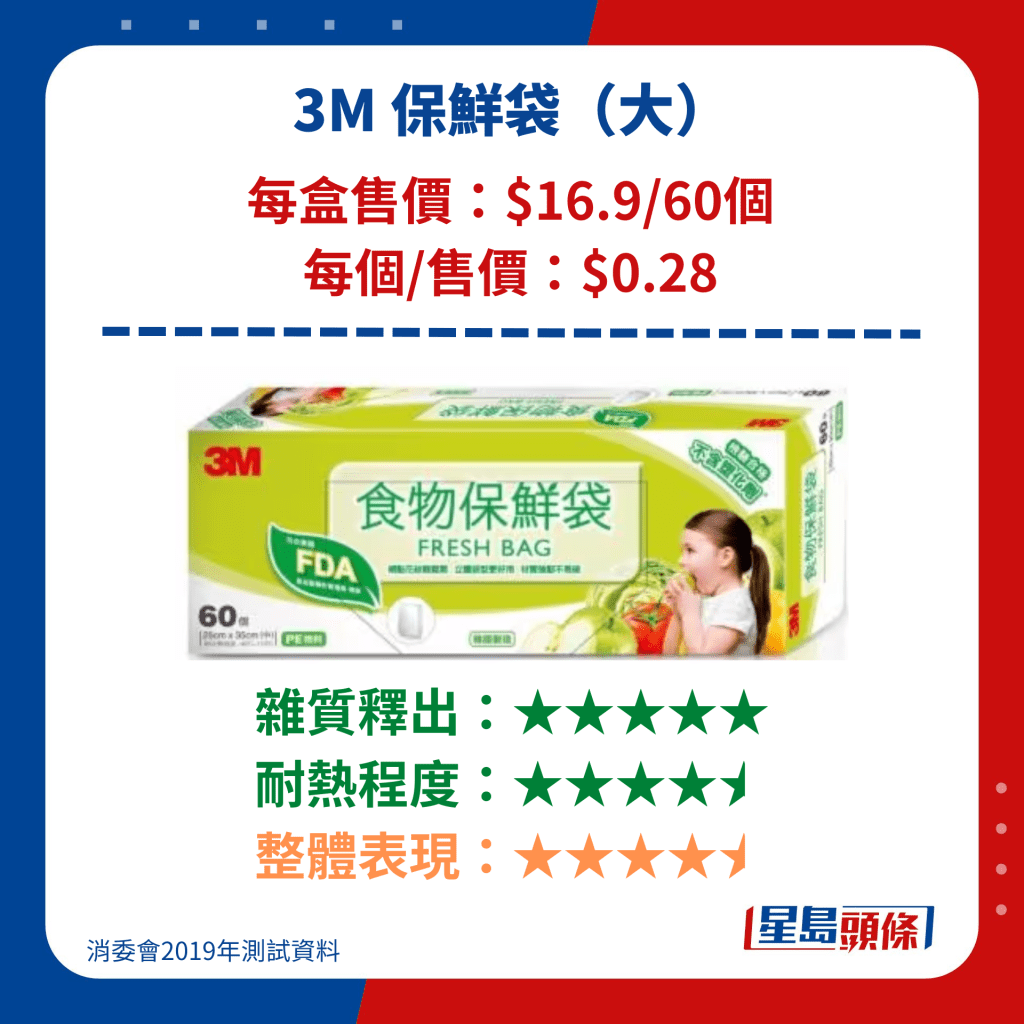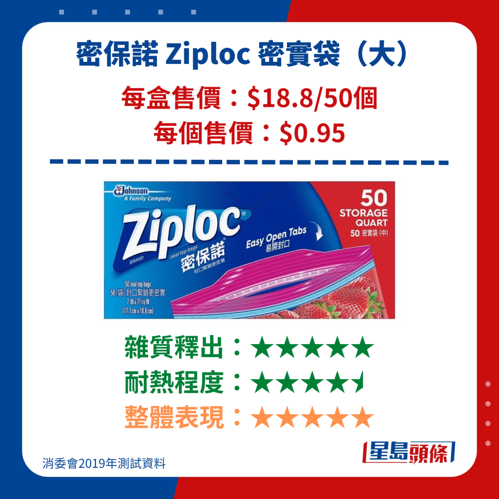 消委會早前以價格和品質作標準,測試了市面上20款密實袋、保鮮袋、普通保鮮膜及微波爐保鮮膜,結果顯示全部符合食品安全標準,有14款在測試中獲得4.5或以上的高評分,其中密保諾牌密實袋更獲得滿分的評級。不過,有品牌的價格差距甚大,同類型的產品相差超過兩倍價錢。
