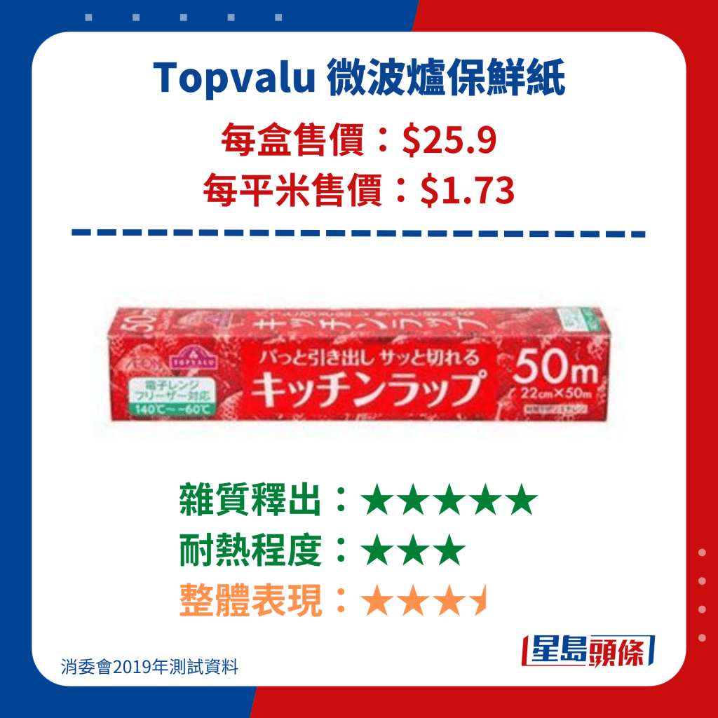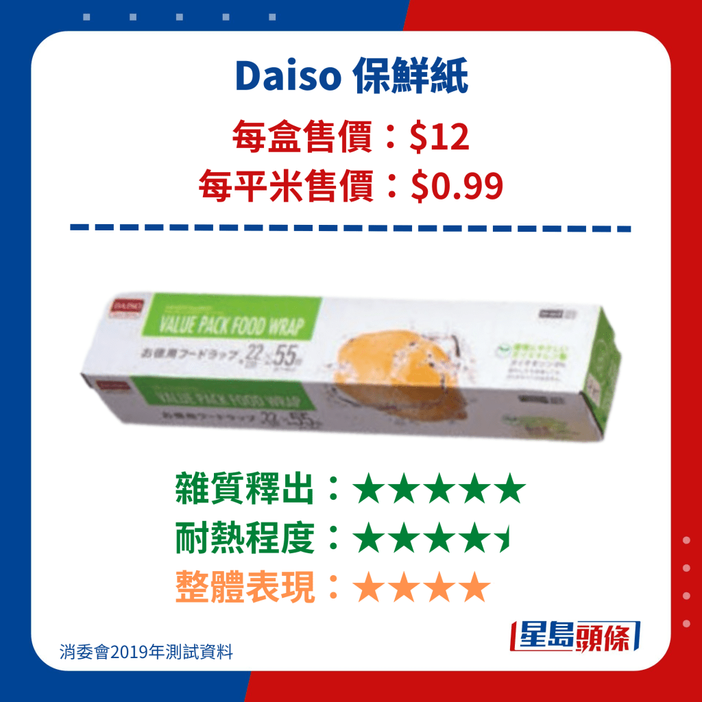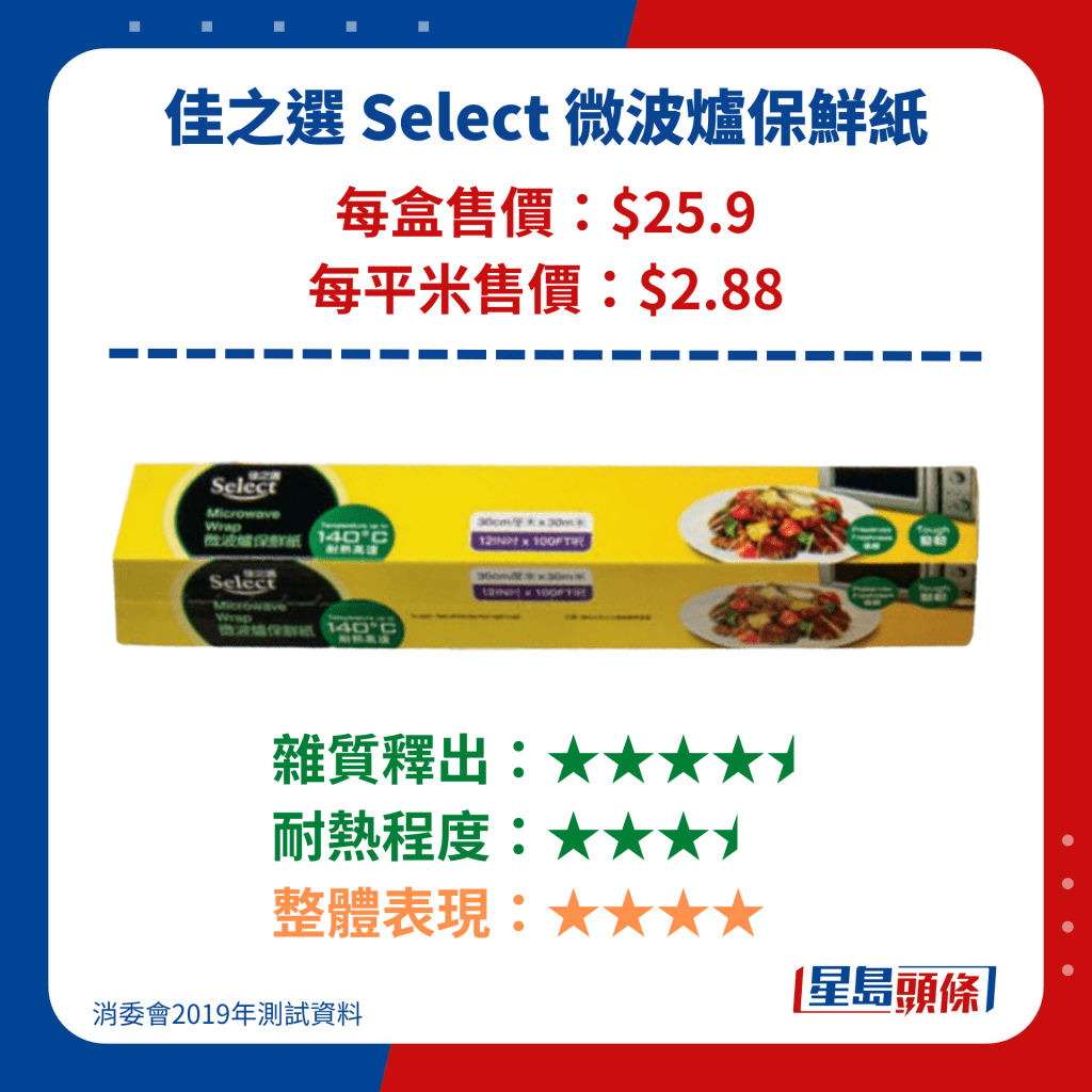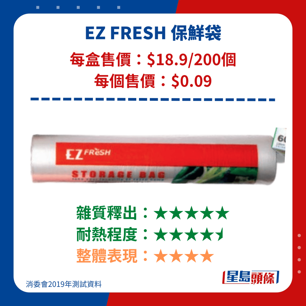 消委會早前以價格和品質作標準,測試了市面上20款密實袋、保鮮袋、普通保鮮膜及微波爐保鮮膜,結果顯示全部符合食品安全標準,有14款在測試中獲得4.5或以上的高評分,其中密保諾牌密實袋更獲得滿分的評級。不過,有品牌的價格差距甚大,同類型的產品相差超過兩倍價錢。
