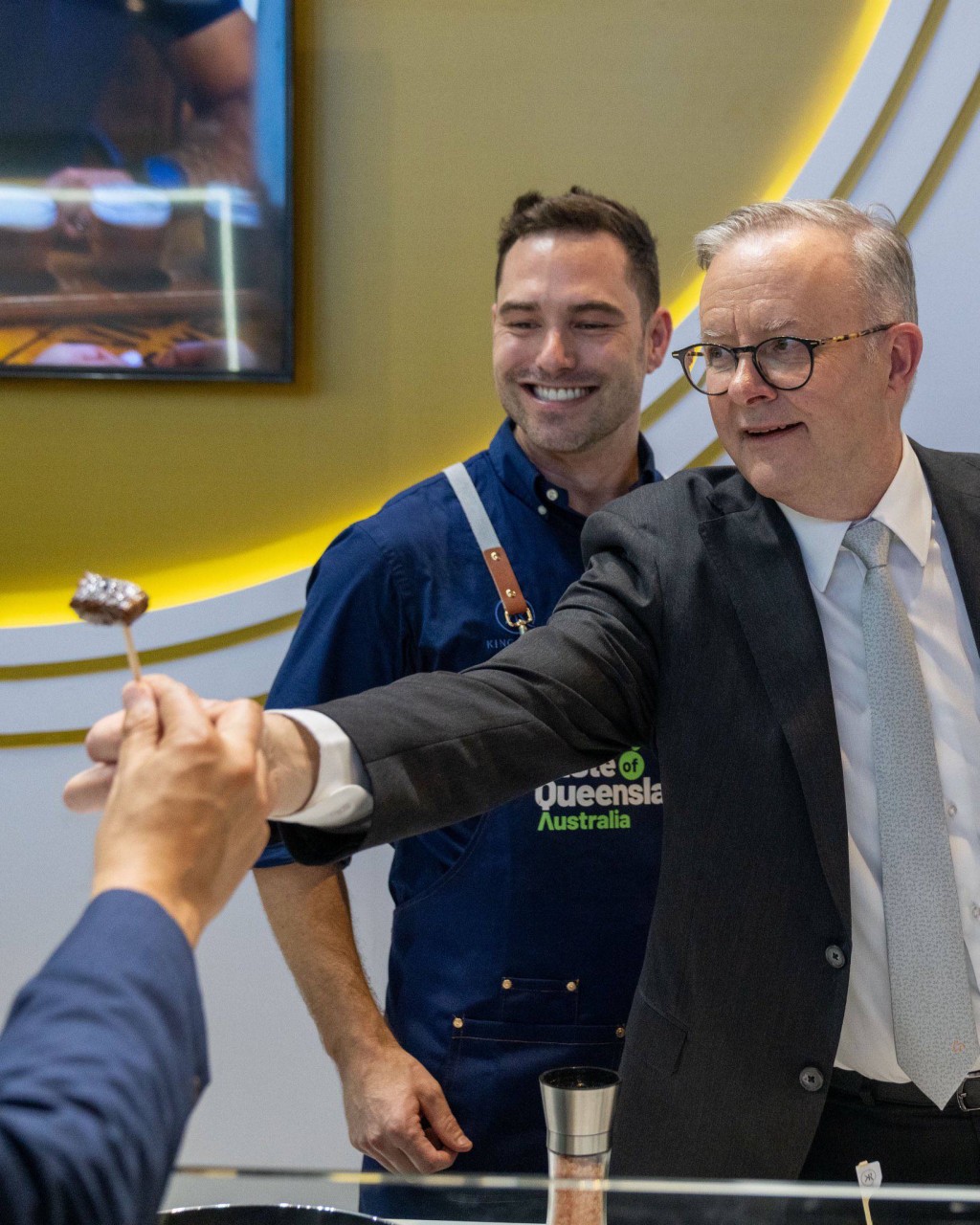 ▲阿爾巴尼斯現身上海進博會澳洲展區,不斷推鎖澳洲產品。(X)