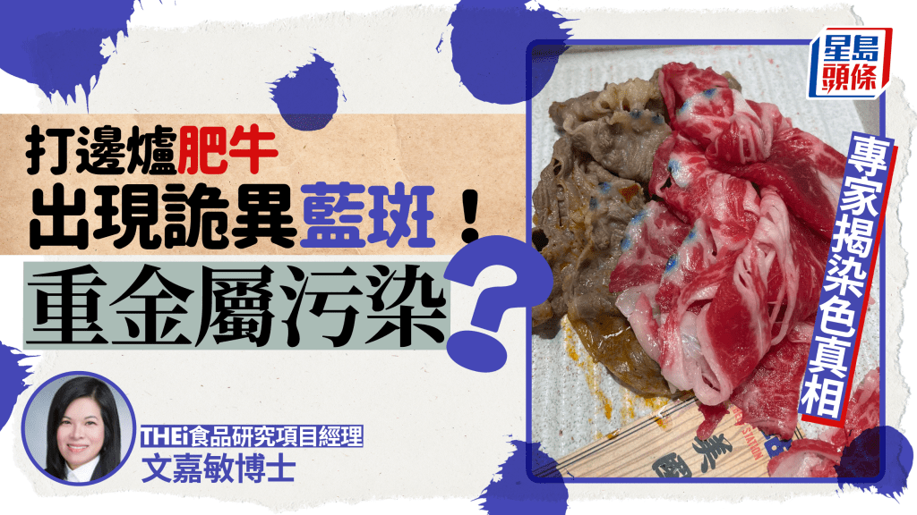 到餐廳用餐時要注意,避免進食受污染的食物。有網民分享早前在火鍋店用餐時,發現肥牛上竟有詭異藍色斑點,且煮熟仍都不褪色,嚇得事主不敢再吃。香港食品創新科技及安全中心食品研究項目經理文嘉敏博士接受《星島頭條》訪問,拆解牛肉染藍色的真相,并分享2大技巧,教分辨品質好的牛肉。