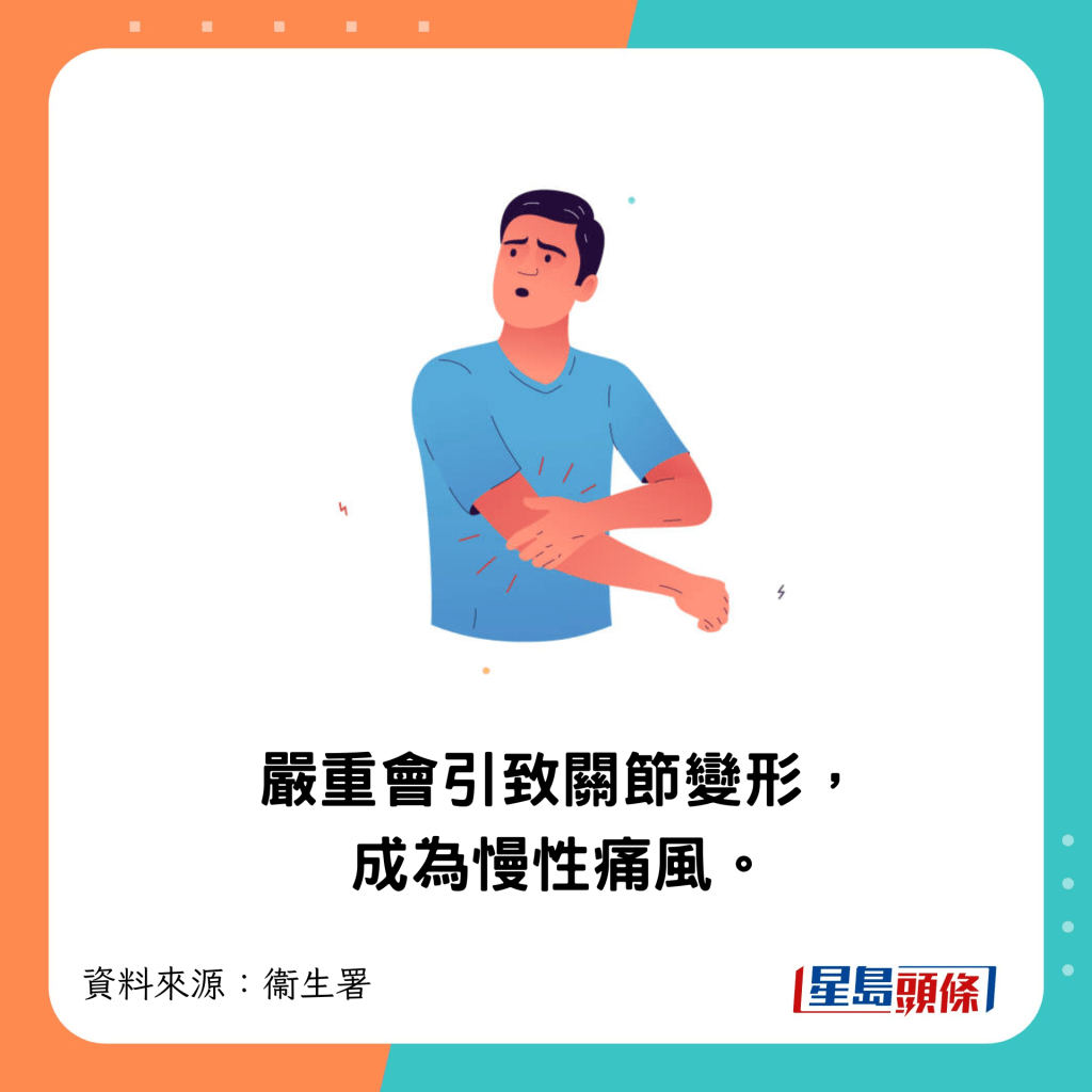 ▲嚴重會引致關節變形,成為慢性痛風。