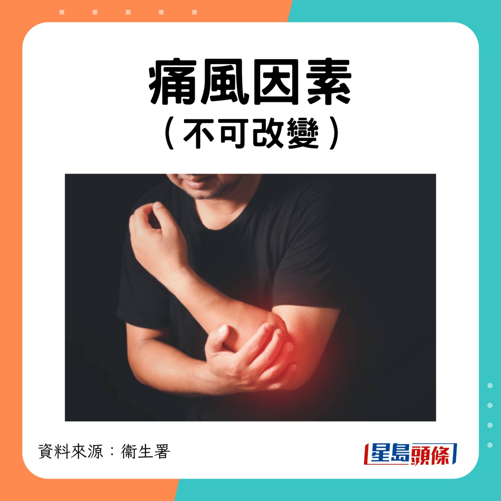 是什么引發痛風?據香港衞生署資料,許多風險因素也可影響血液中的尿酸水平,并誘發痛風。有些風險因素屬于遺傳性,是不可改變的。不過,亦有多個與生活模式和飲食相關的風險因素是可改變的,例如飲食習慣。