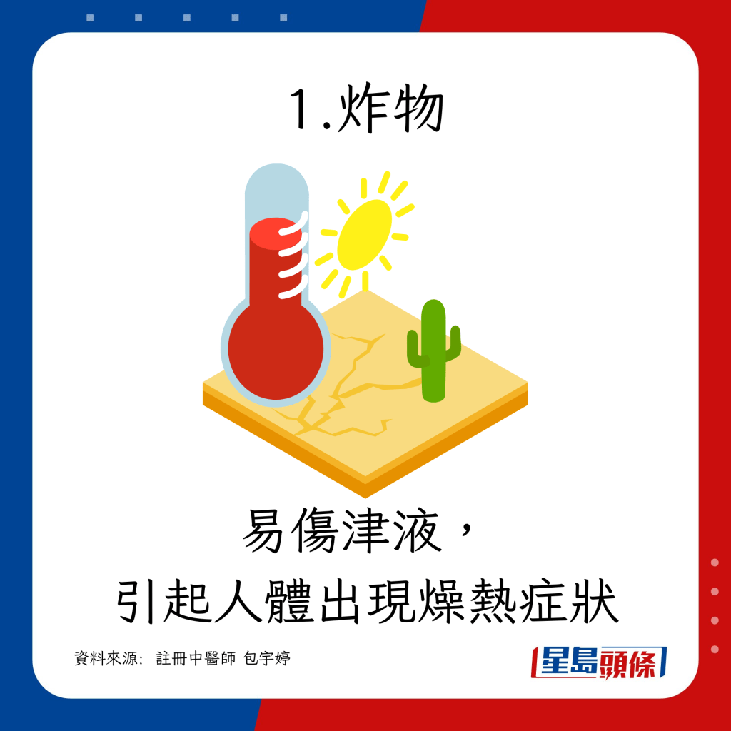 注冊中醫師包宇婷表示,“小雪”應盡量避免以下食物,以免傷脾胃及變得燥熱,加劇小雪氣候引發的不適癥狀: