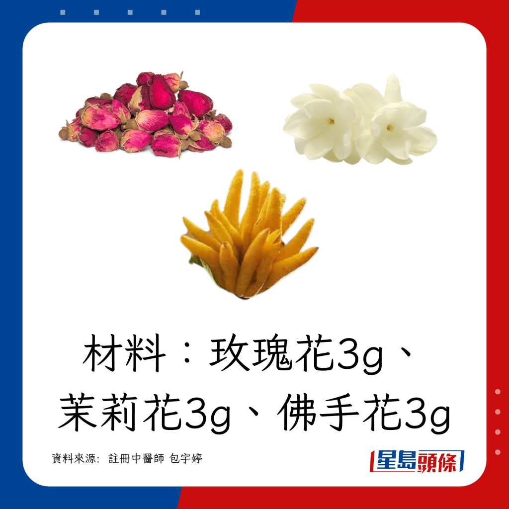 玫瑰茉莉佛手花茶飲、桂皮甘草牛肉湯的功效、材料、做法: