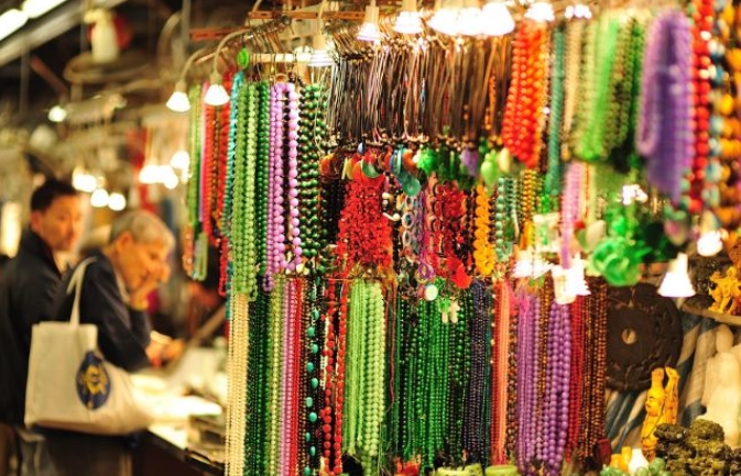 玉器市場和廟街相鄰,是珠寶批發與零售的集散地。這里一共有超過400個攤檔,售賣各式各樣美不勝收的玉器,包括吊咀、指環、手鐲、雕刻及裝飾,由罕有的翠玉雕刻,至小巧便宜的飾物,全都可以找到,但價格的差異當然也很大,如果想要購買貨真價實的玉器,最好帶一個懂玉石買賣的朋友入場同行,或者跟團出發。