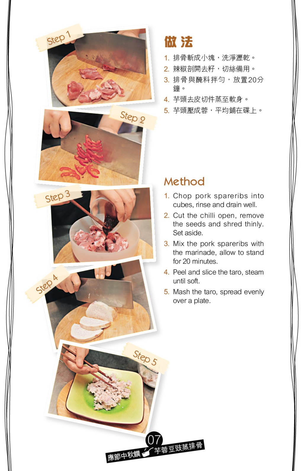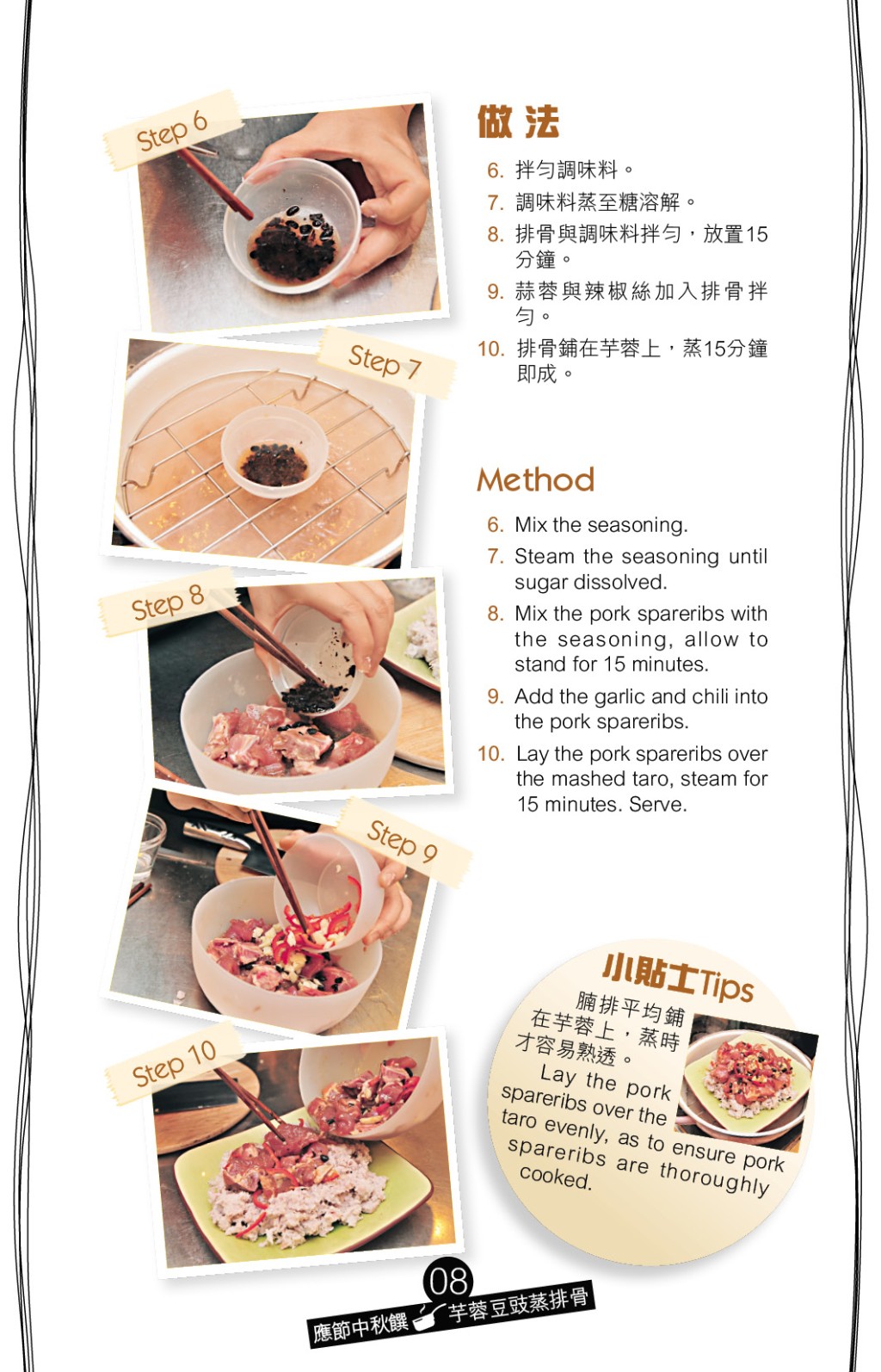 ▲將蒸軟及搓爛的芋泥墊底,加上拌入蒜蓉和豆豉的排骨蒸熟,香軟芋泥盡吸精華。