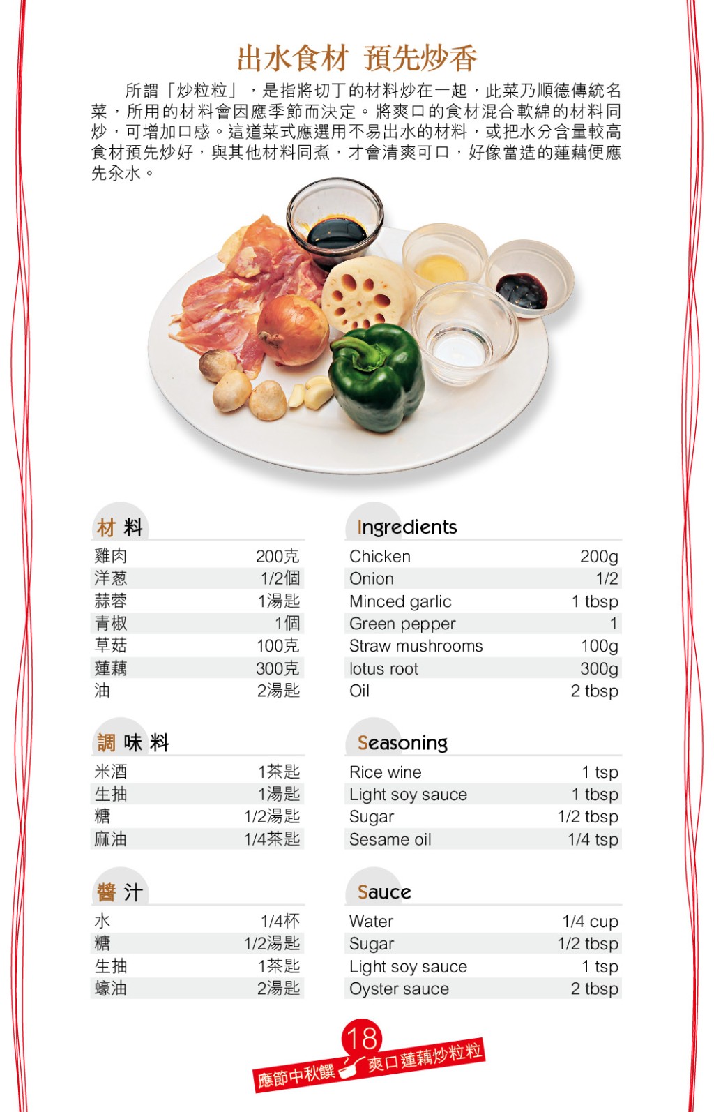 ▲材料包括雞肉、蓮藕、青椒、洋蔥、草菇