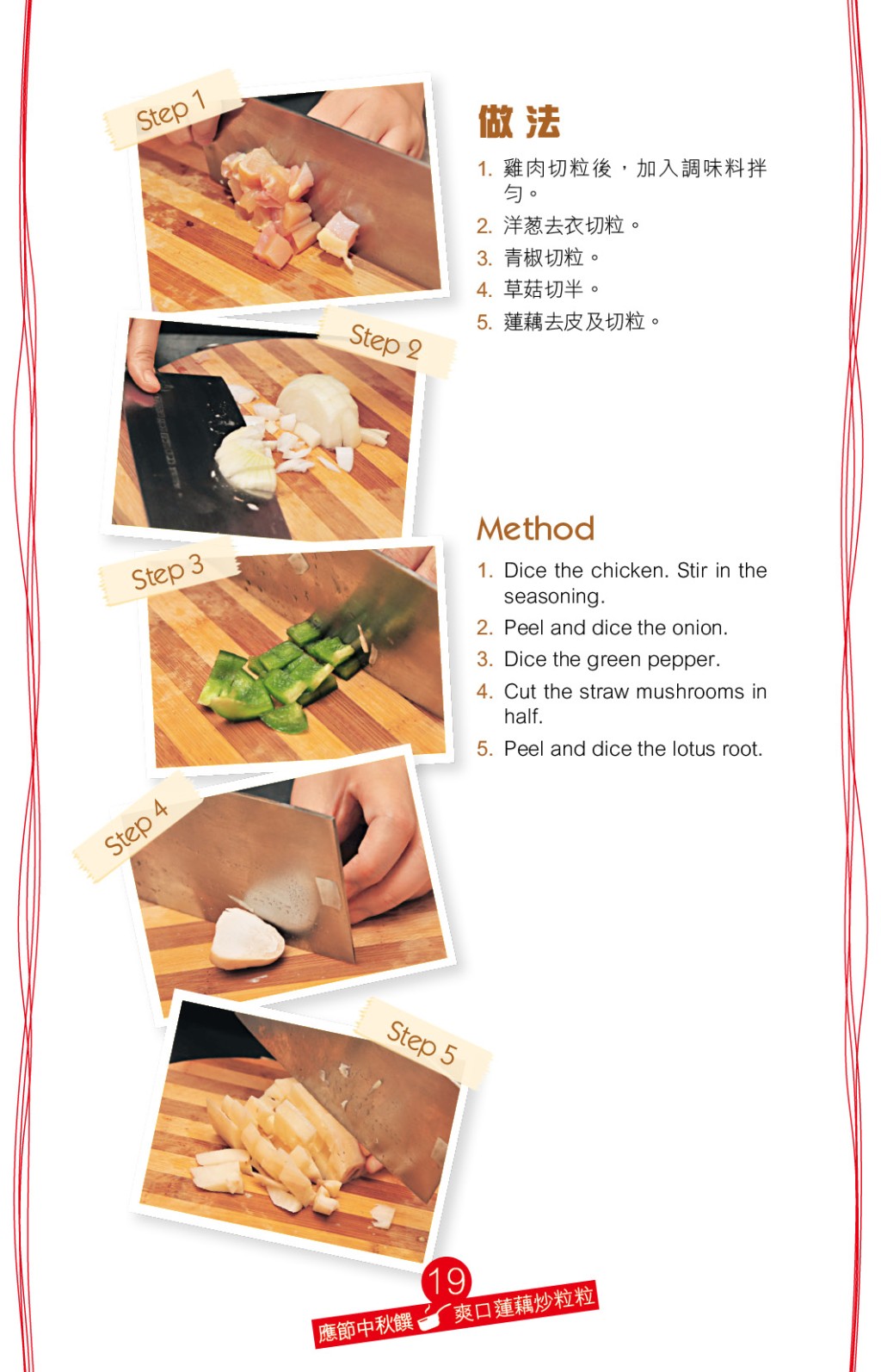 喜歡爽脆口感,推介爽口蓮藕炒粒粒。 材料包括雞肉、蓮藕、青椒、洋蔥、草菇,正處于當造的蓮藕,入口清甜爽脆,可為這味家常菜小炒減膩滯。 為免炒煮時出水,可先將蓮藕粒汆水。 另可按個人口味,加入粟米、紅椒、青豆、菜脯烹調,增添口感層次。