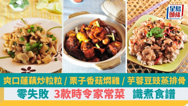 踏入冬季,不少食材當造,今日教大家烹調3款時令家常菜,分別以當造栗子、芋頭及蓮藕入饌,做法簡單,充滿冬日家常風味。