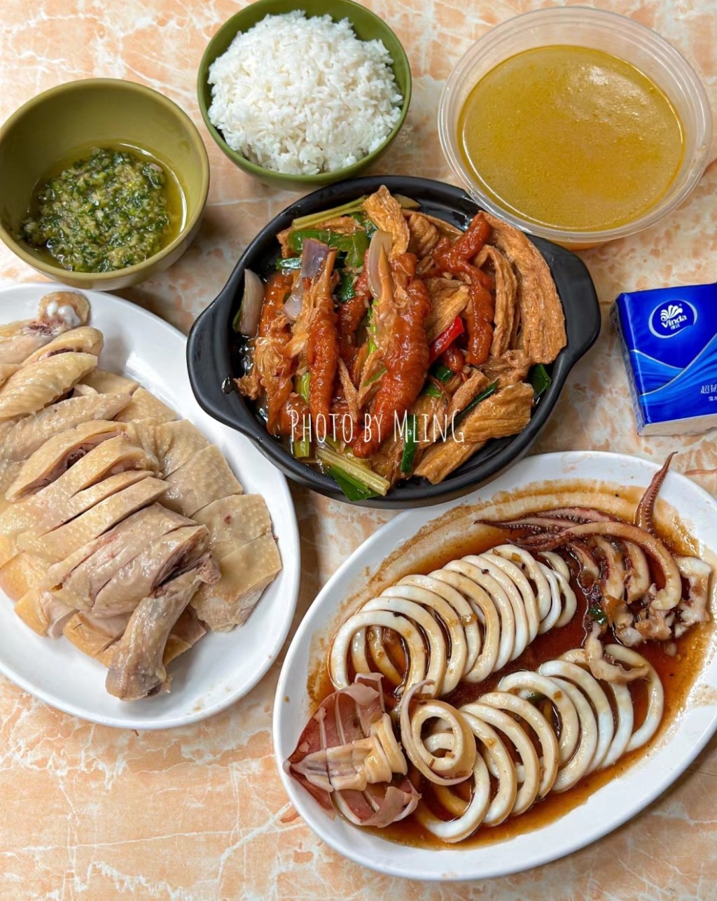 廣州東江美食店位于地鐵五羊邨站出口,是一間開業近三十年的老字號客家菜館,食物分量大,性價比高,深受廣州街坊歡迎。 招牌菜東江鹽焗雞,精選雞只肉質嫩滑,雞皮油亮,焗制咸香入味,難怪每桌客人必點這款美食。 泰汁福壽魚一魚兩吃,先將魚炸到皮脆肉嫩,淋上酸甜的泰汁,非常醒胃,也可以清蒸、紅燒、炒絲瓜等,另一吃是魚骨豆腐湯,奶白色的魚湯味道鮮甜。 沙姜香炒脆腎花,沙姜香味獨特,鑊氣十足。 打卡美食椒鹽魷魚須分量夠大,炸得外酥內嫩,還有沙茶豆角炒鮮魷魚,兩者配啤酒一流。