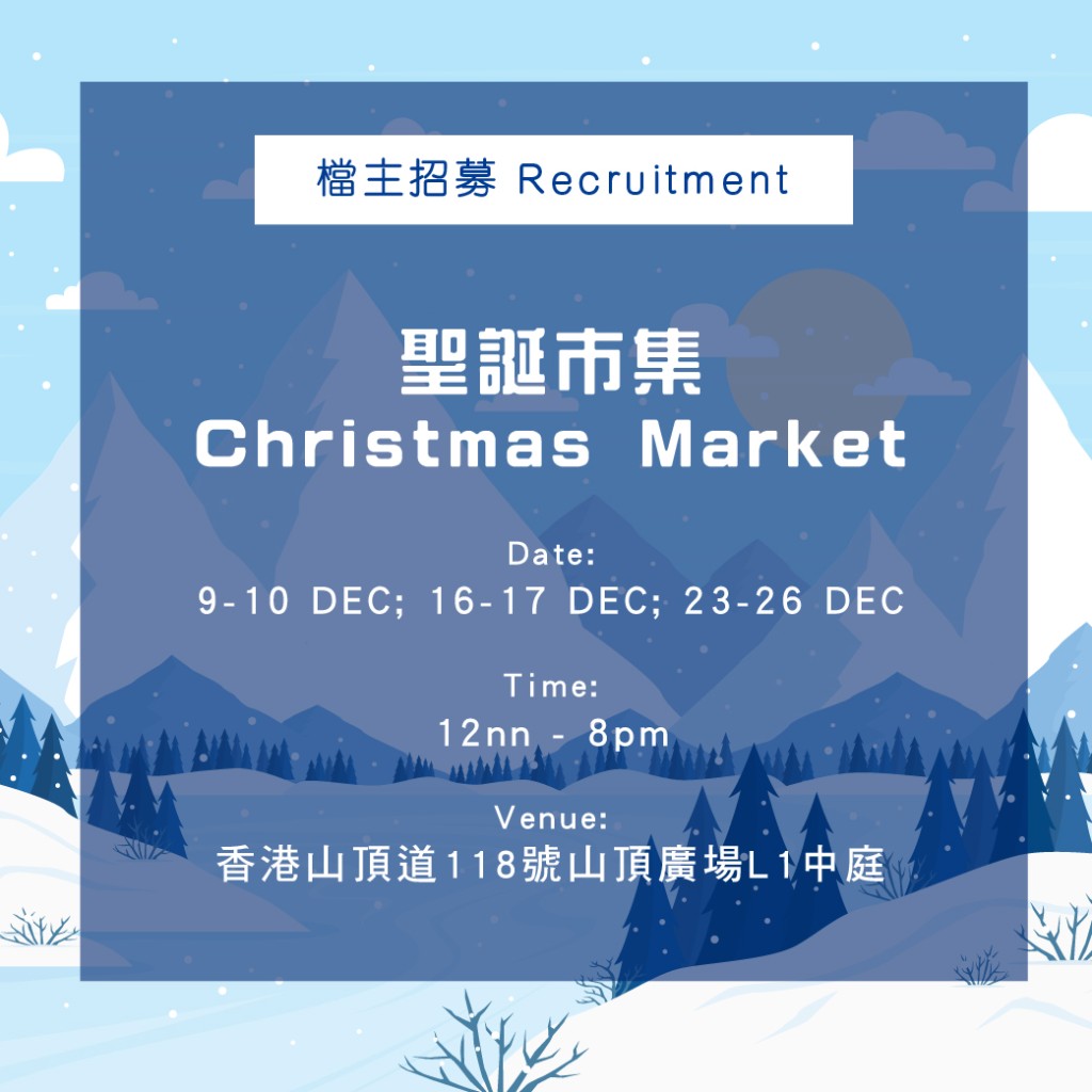 市集搞手”麥田捕手”今年將在山頂廣場舉辦圣誕市集,到時將以臺灣人氣貓咪角色為主題,市集更齊集多個本地手作及設計品牌,包括寵物用品及食品、圣誕禮品、圣誕花藝制作、包裝食品等等。