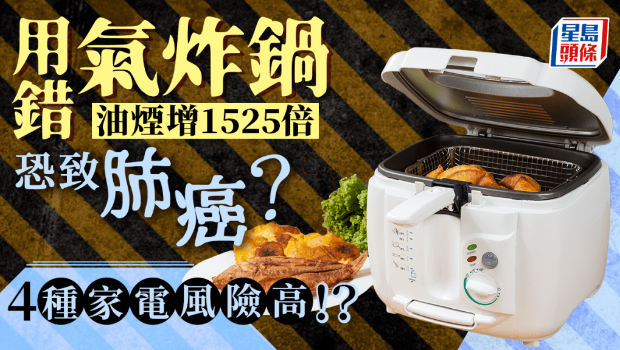 不只街外空氣污染問題,家中的油煙也會影響健康。研究指出,有1種空氣炸鍋使用方式有機會令油煙濃度增加1525倍,恐怕增加患肺癌風險。包括空氣炸鍋在內,若不謹慎使用4種家電,同樣有風險。