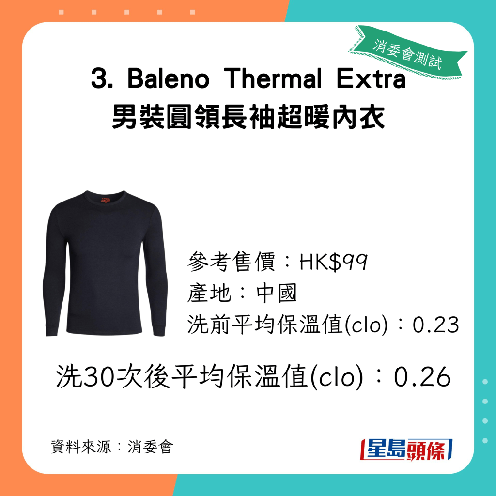▲Baleno Thermal Extra 男裝圓領長袖超暖內衣:總評獲4星
