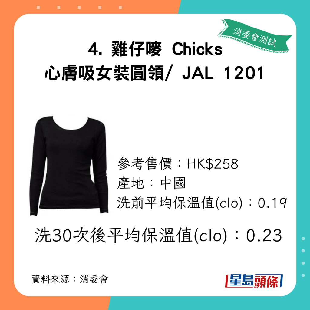 ▲雞仔嘜 Chicks 心膚吸女裝圓領/ JAL 1201:總評獲3.5星