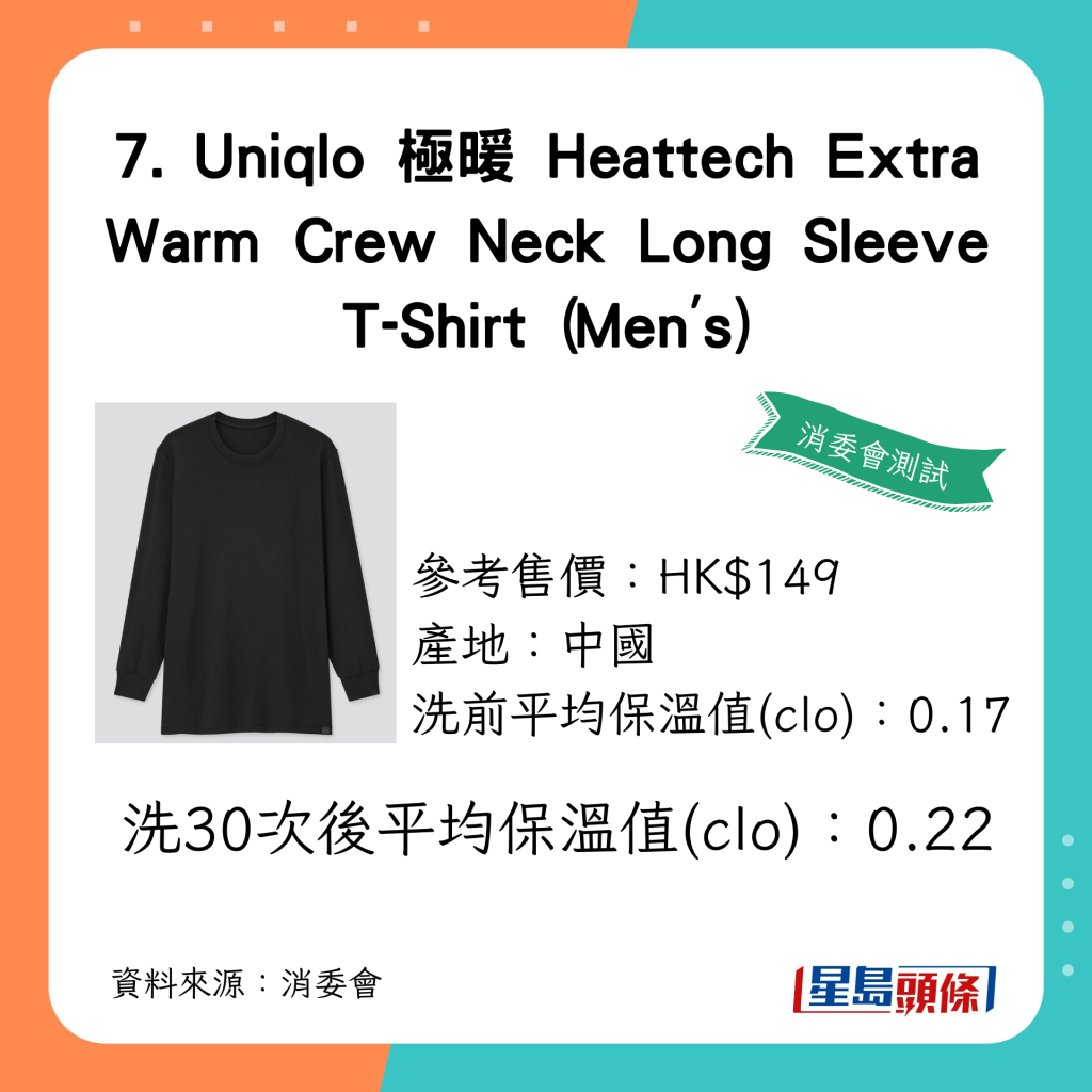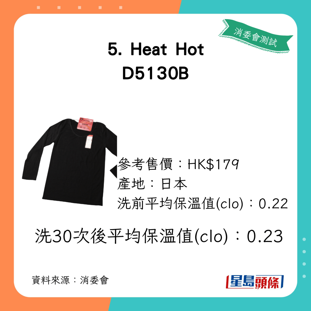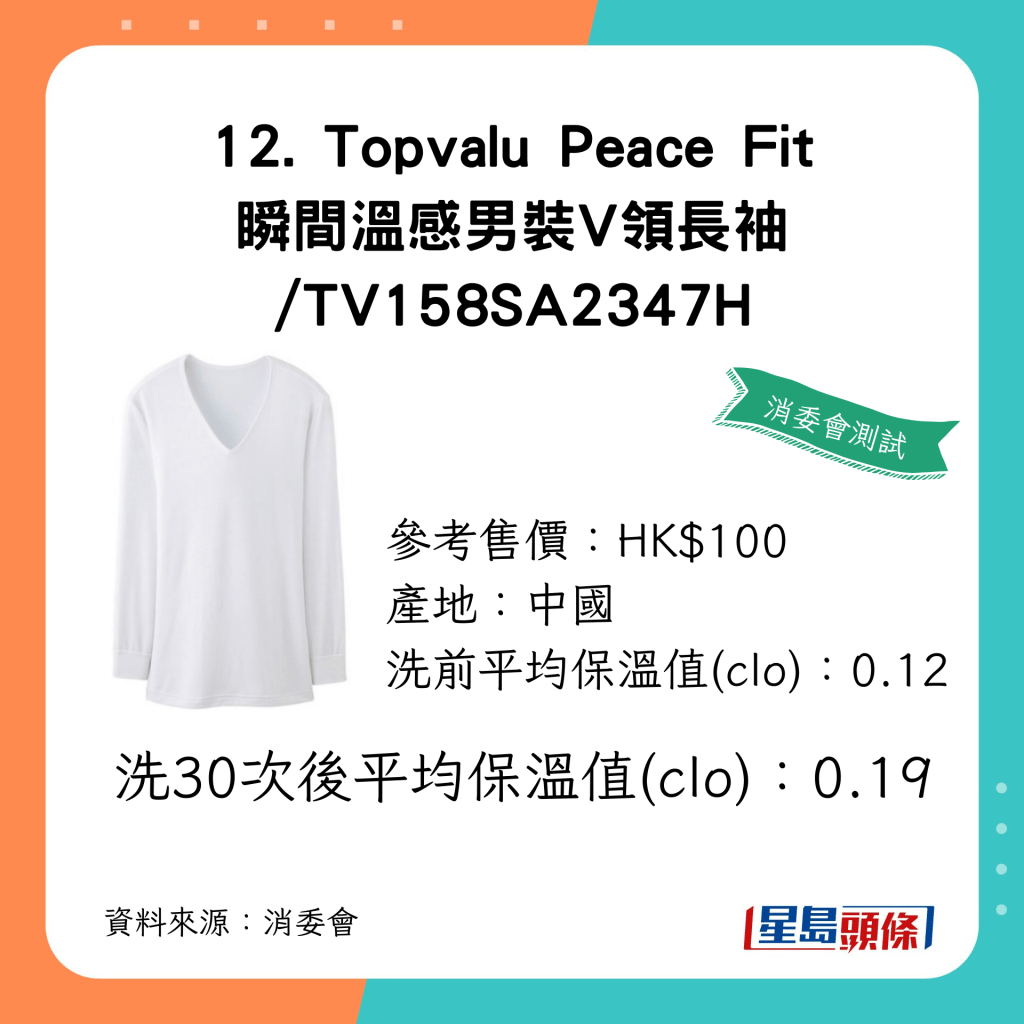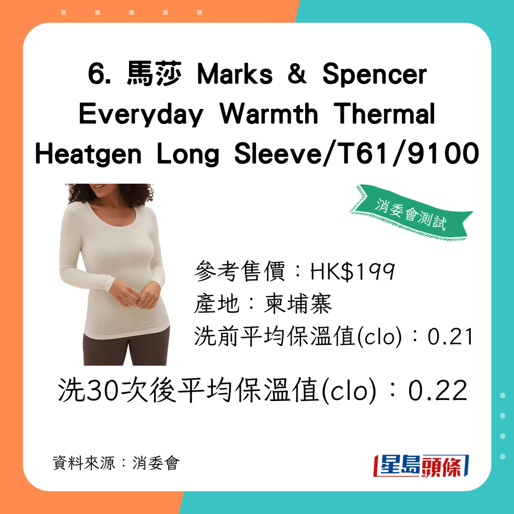 根據消委會測試結果,以下6款保暖內衣的保暖值升幅20%或以上: