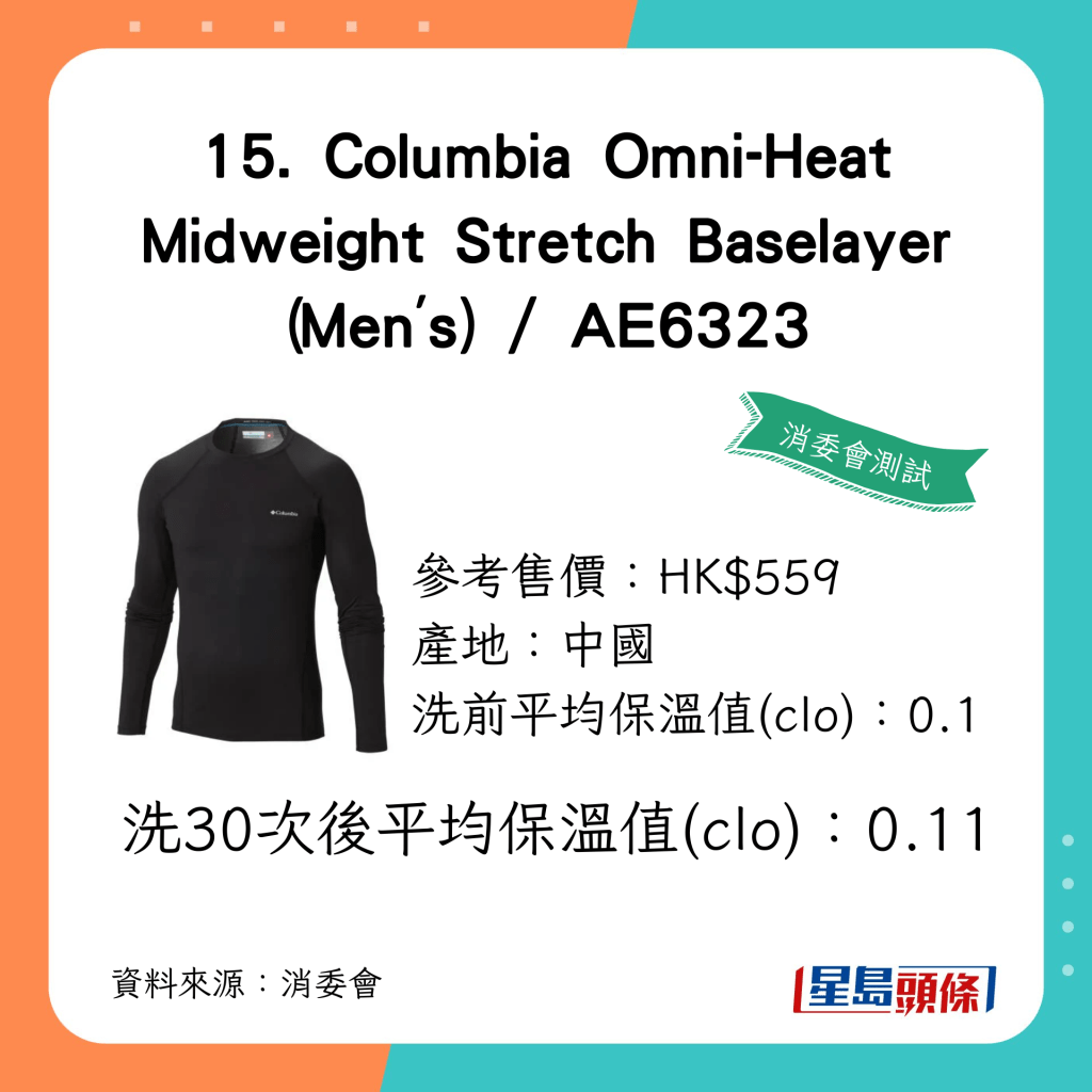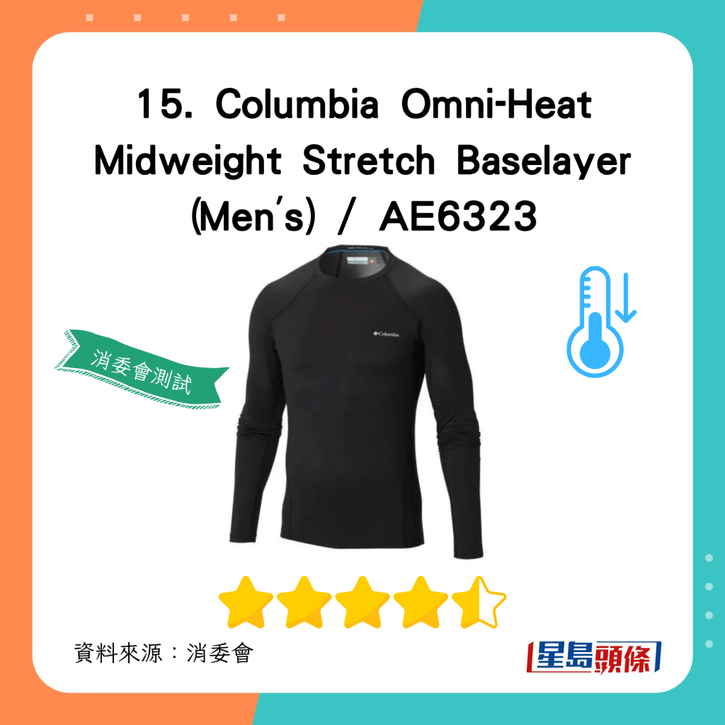 ▲Columbia Omni-Heat Midweight Stretch Baselayer:總評獲4.5星 (Men's)