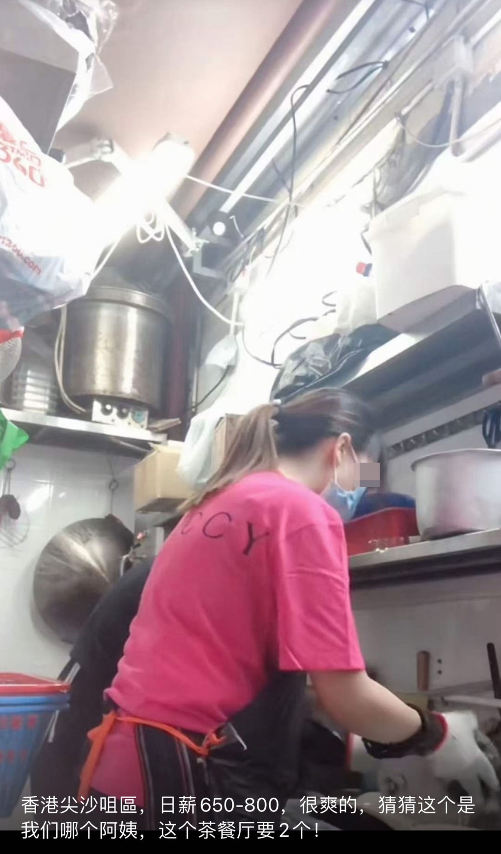 ▲內地中介發放女工洗碗的相片,并留言指女工身處尖沙咀區的茶餐廳,日薪650至800元。