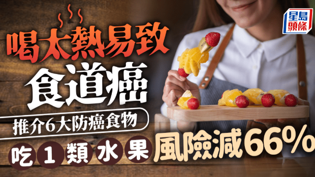 食道癌為香港第10位致命癌癥,每年平均新增約400宗確診個案,喝太熱的飲品為致癌因素之一。 有醫生引述研究指,有5類食物有效預防食道癌,其中1類水果更有助減低66%風險。