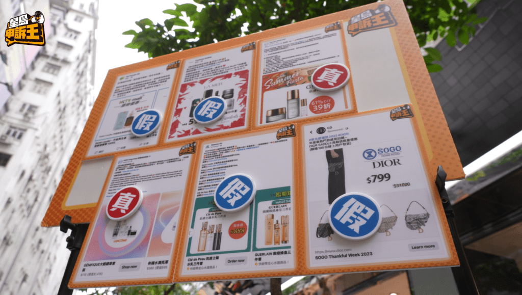 ▲《星島申訴王》準備了六個真假專頁截圖,在街頭實測,讓市民挑戰一下分真假。