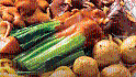 打開蓋,取出臘味。