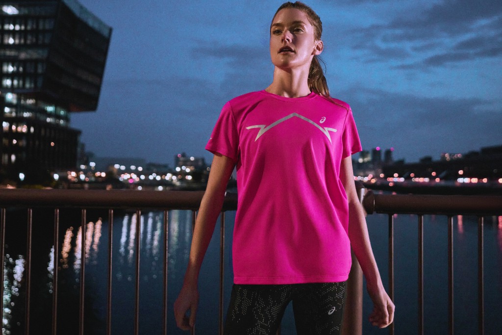 ▲Winter Lite-Show系列女裝T恤$330/AS,胸前、衣袖及背部采用先進的反光細節設計,當中50%衣料由循環再造物料制成及具快干功能。