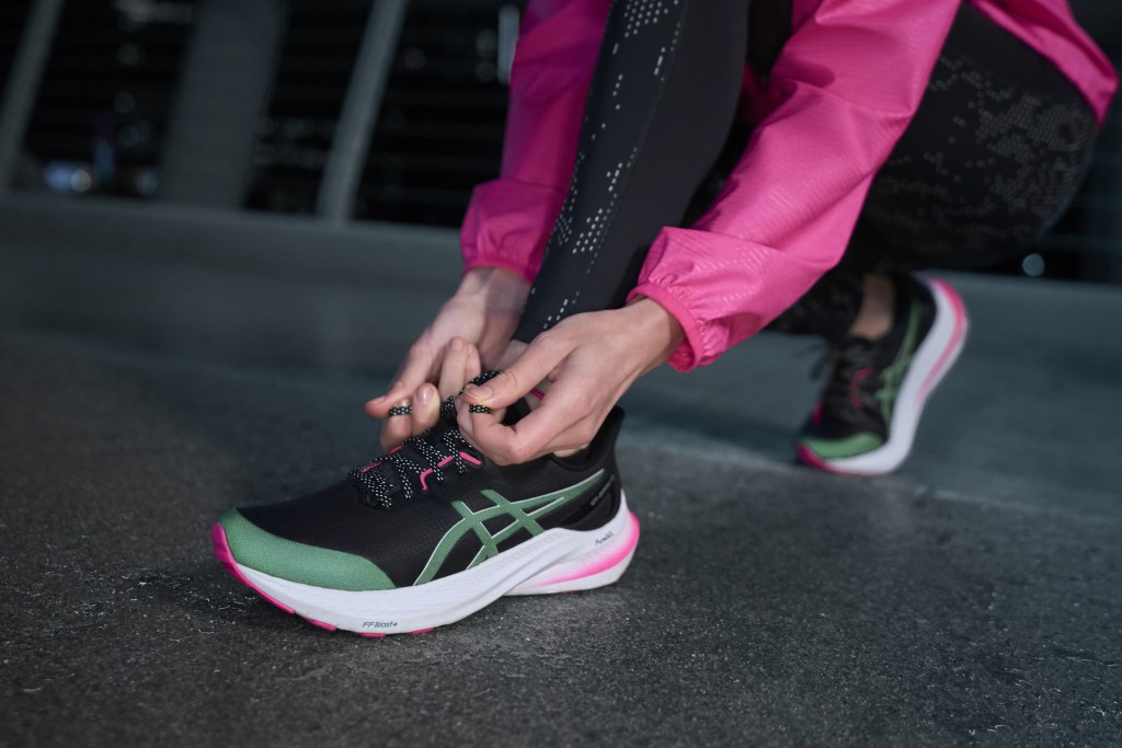 ▲多功能訓練型GT-2000 12女裝跑鞋$890/AS,鞋身用安全反光設計,鞋頭及品牌虎爪標志在夜間低光下,呈現炫目的霓虹色彩,另具防寒及擋濕功能。
