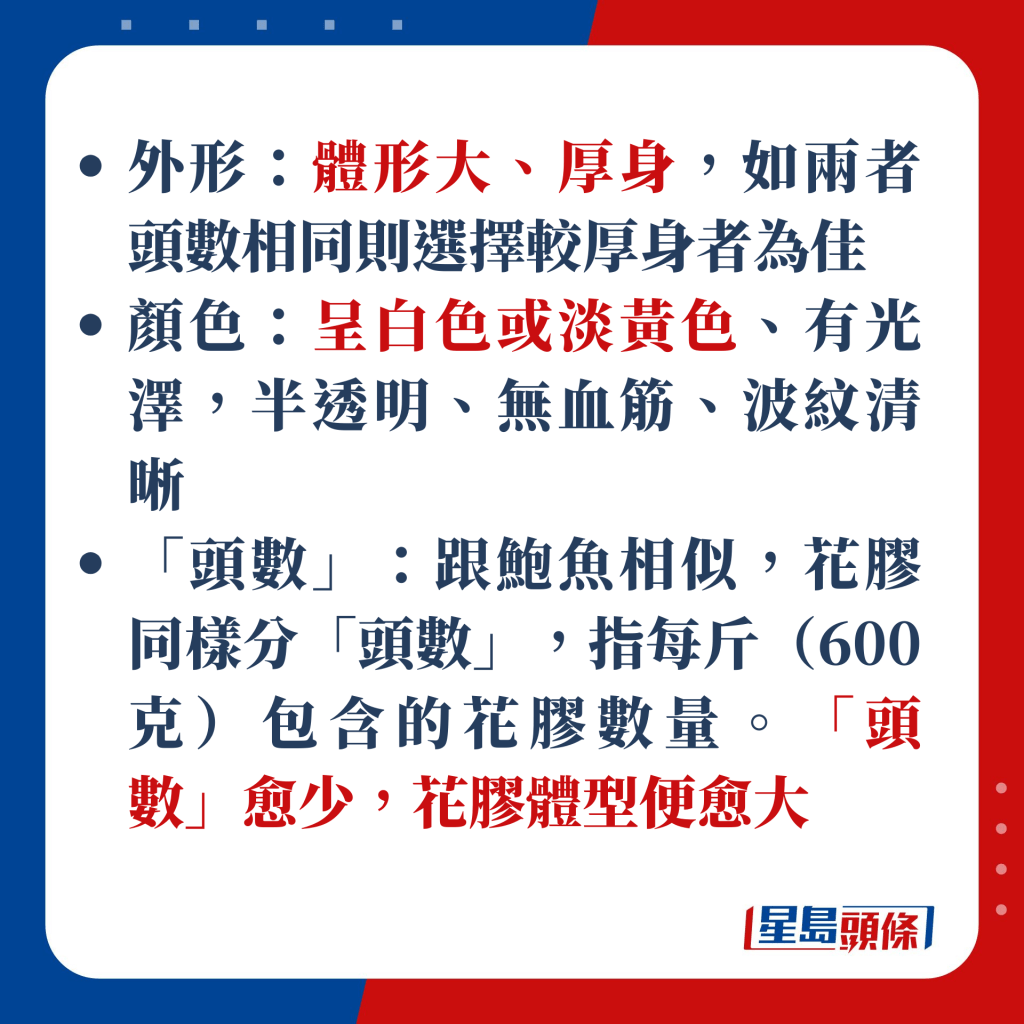 還有不足一個月就是農歷新年,不少人都會買海味過節,但海味種類繁復,來自不同產地、大小及制作方法都會影響其價格。 到底過年必備的鮑魚、海參、花膠如何揀選與保存為之最好?消委會最近于網上分享干貨鮑參肚的種類、挑選方式及保存方法,原來貴價海味的營養價格不一定比平價海味高,食海參時有一類人最好先尋求醫生意見,鮑魚的“頭數”又代表什么?