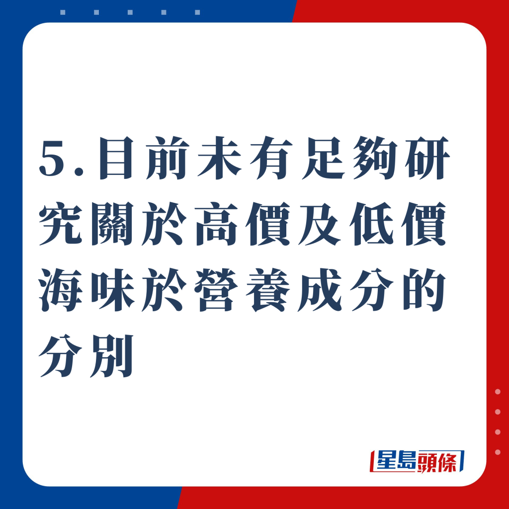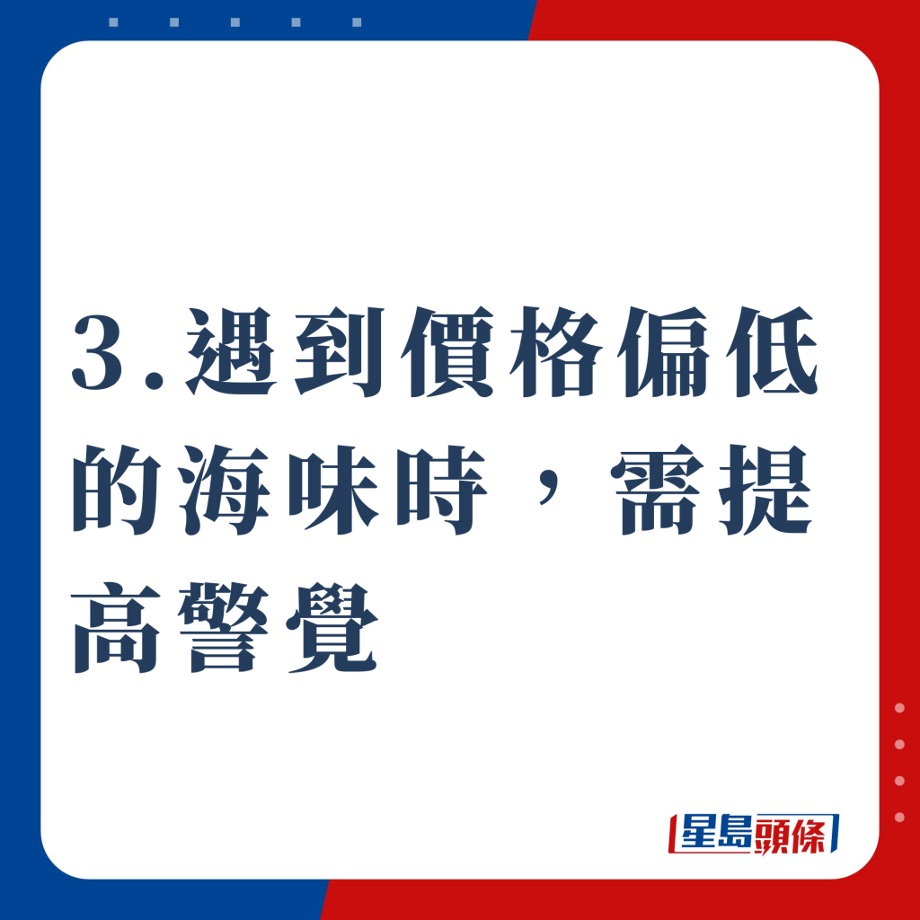 不過,消委會提醒大家選購海味時要注意5點,包括光顧信譽及口碑良好的店鋪,保留詳細收據、留意“斤”與“両”單位等。 此外,如遇上價格偏低的海味時,需提高警覺。 雖然海味的營養價值取決于食材的品質、產地,從而影響價格,但目前未有足夠研究關于高價及低價海味于營養成分的分別,因此,貴價的海味未必代表其營養價值較低價海味高。