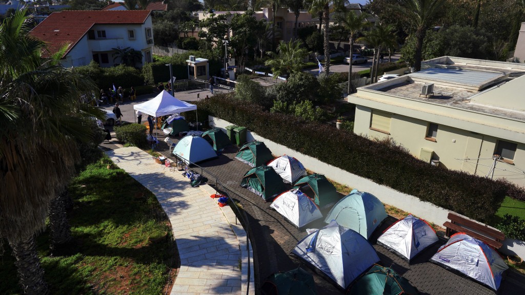 ▲以色列人質家屬及支持者在內塔尼亞胡私宅外扎營。 路透社